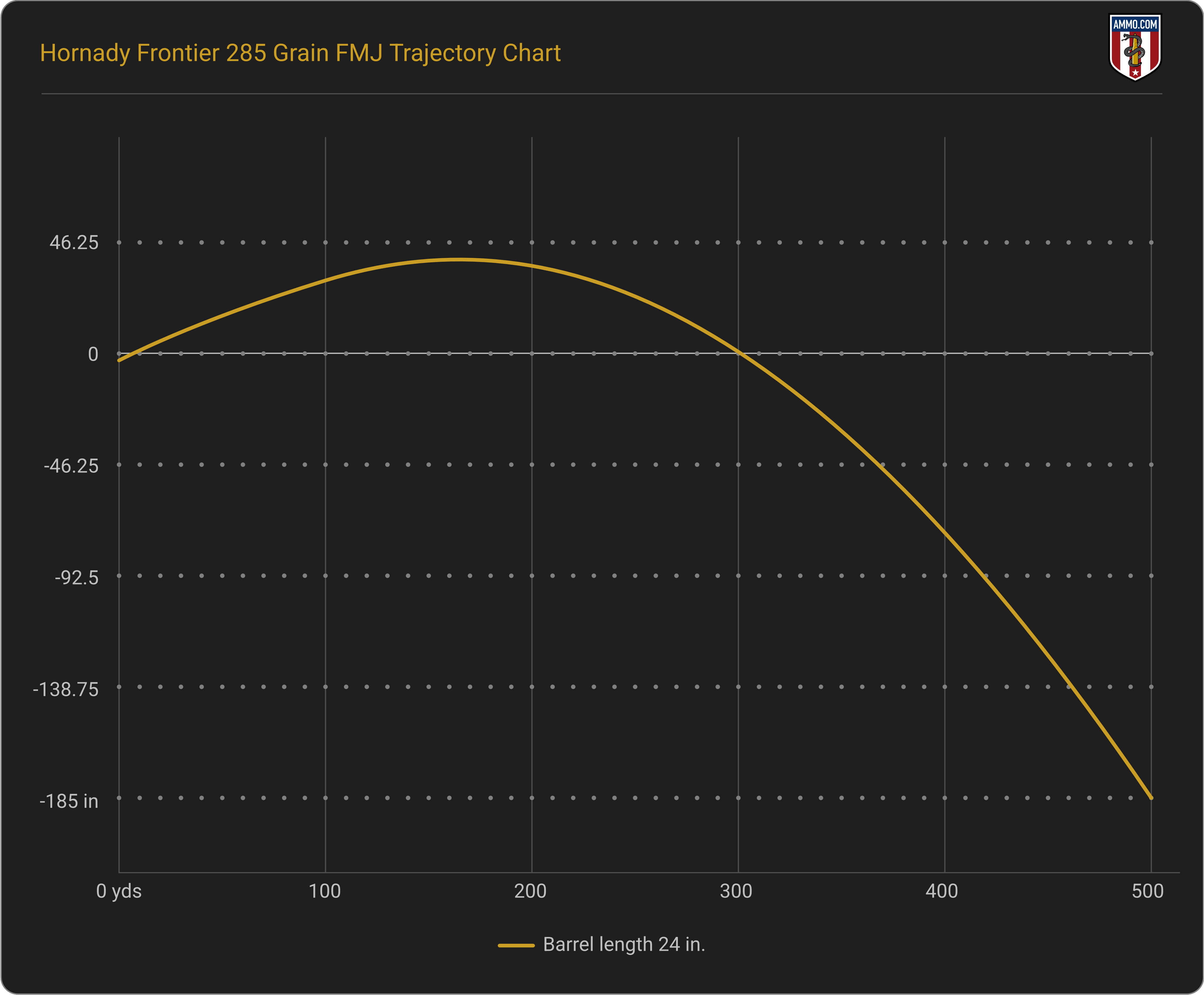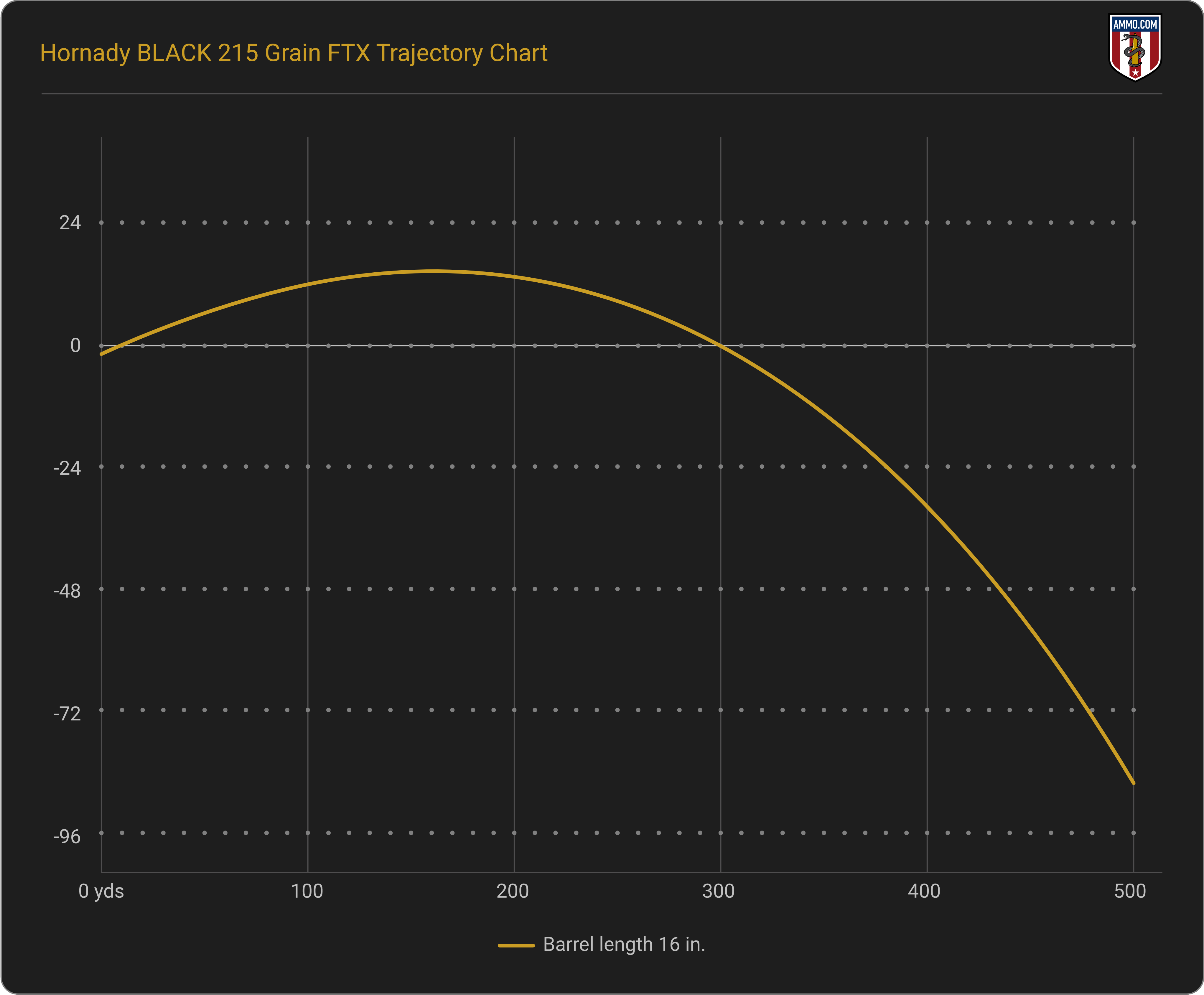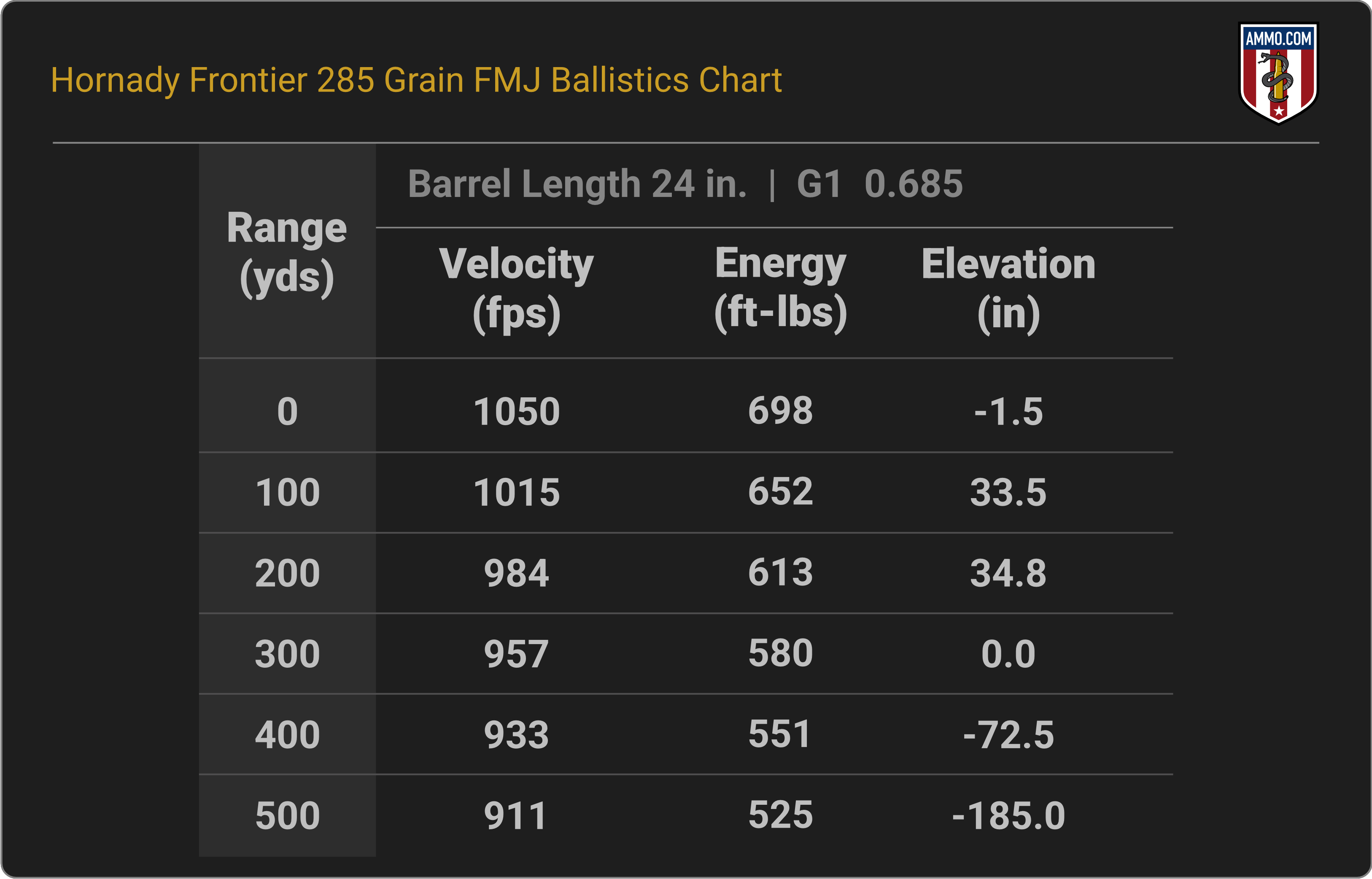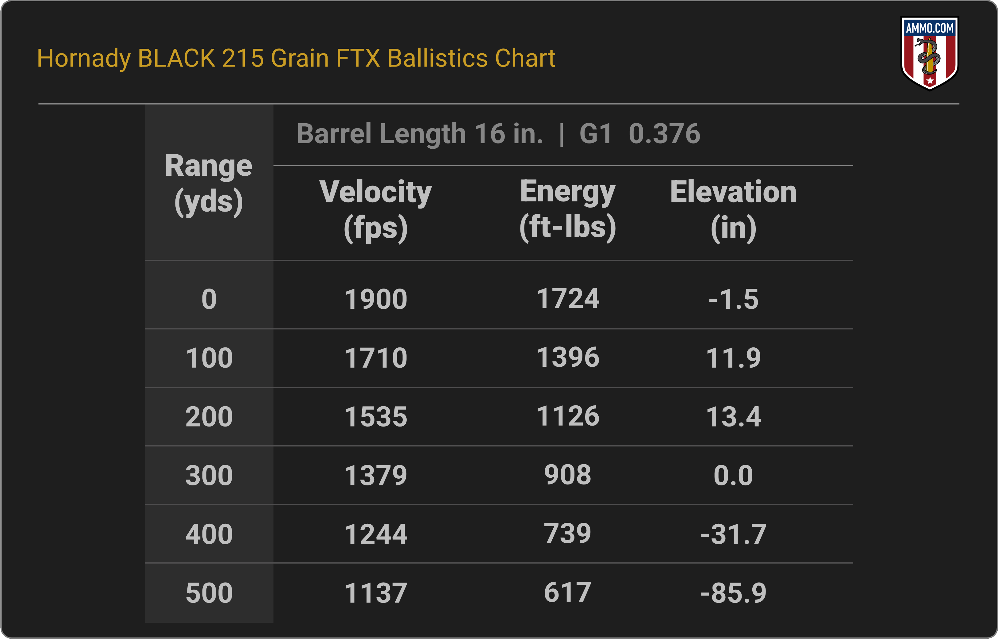 Administrative Note: The information above comes from the manufacturer. Ballistics obtained with your firearm can vary considerably from advertised ballistics. Also, ballistics can vary from lot to lot with the same brand and load. When manufacturer data were unavailable, ballistics were calculated by Ammo.com.