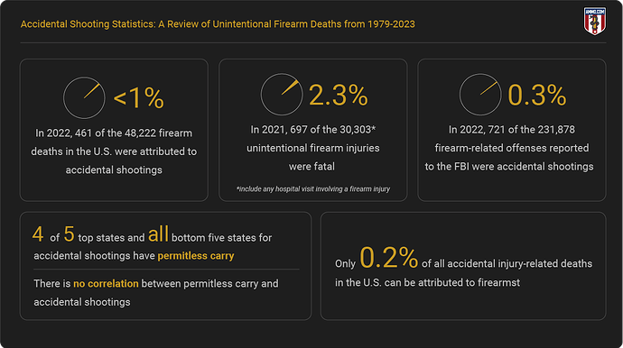 Though 2.3% of accidental shootings are fatal, only 0.0001% of all firearms in the U.S. are involved in such incidents, affecting just 0.05% of all households with firearms.