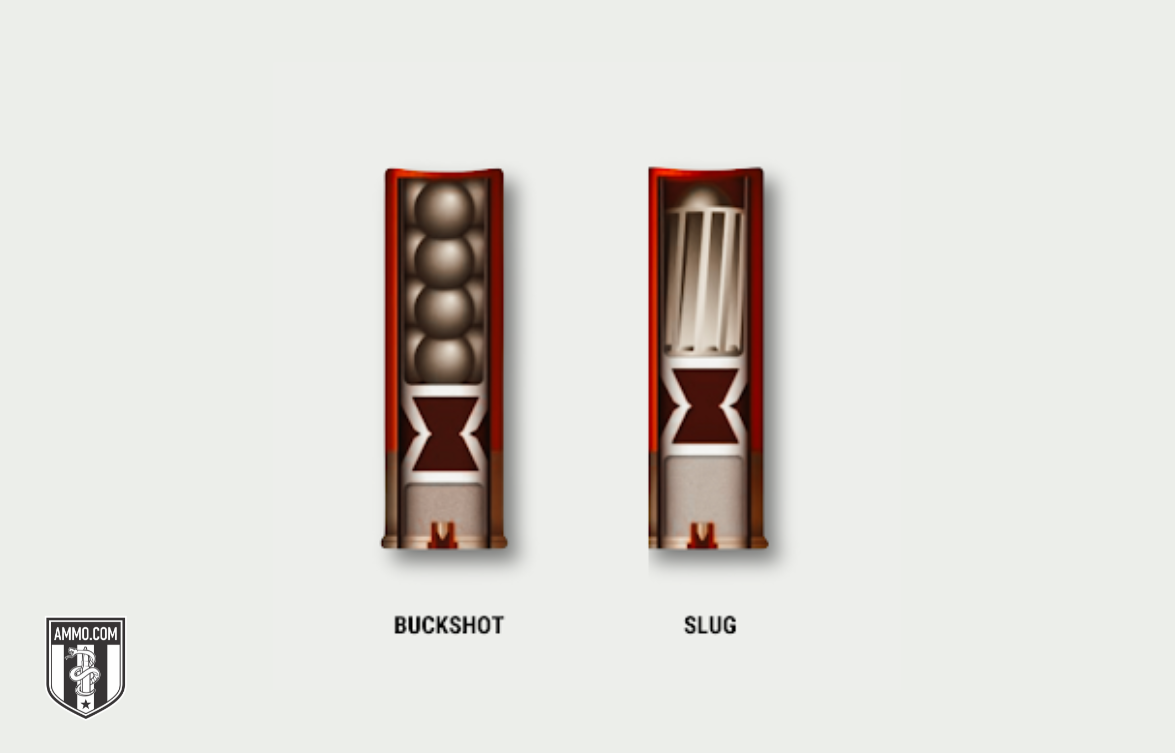 The difference between buckshot and a shotgun slug is simple. Buckshot is multiple projectiles: lead balls typically ranging from 0.24 to 0.36 inches in diameter. Conversely, a slug is a single projectile: usually made of lead (sometimes copper or other metal), which performs similarly to a rifle bullet. Buckshot is effective at closer ranges (usually within 50 yards), whereas a standard rifled slug is effective out to 100 to 150 yards.
