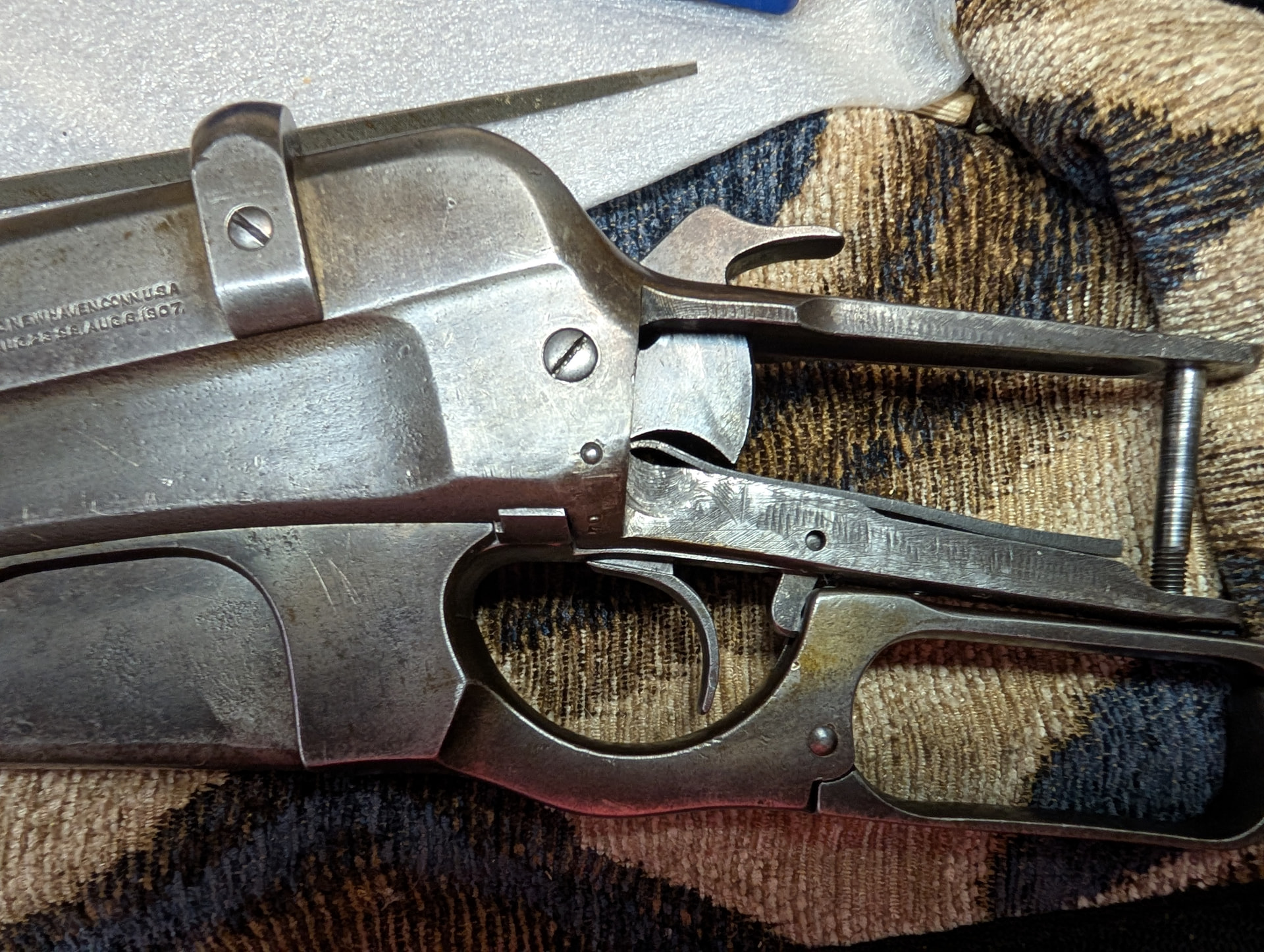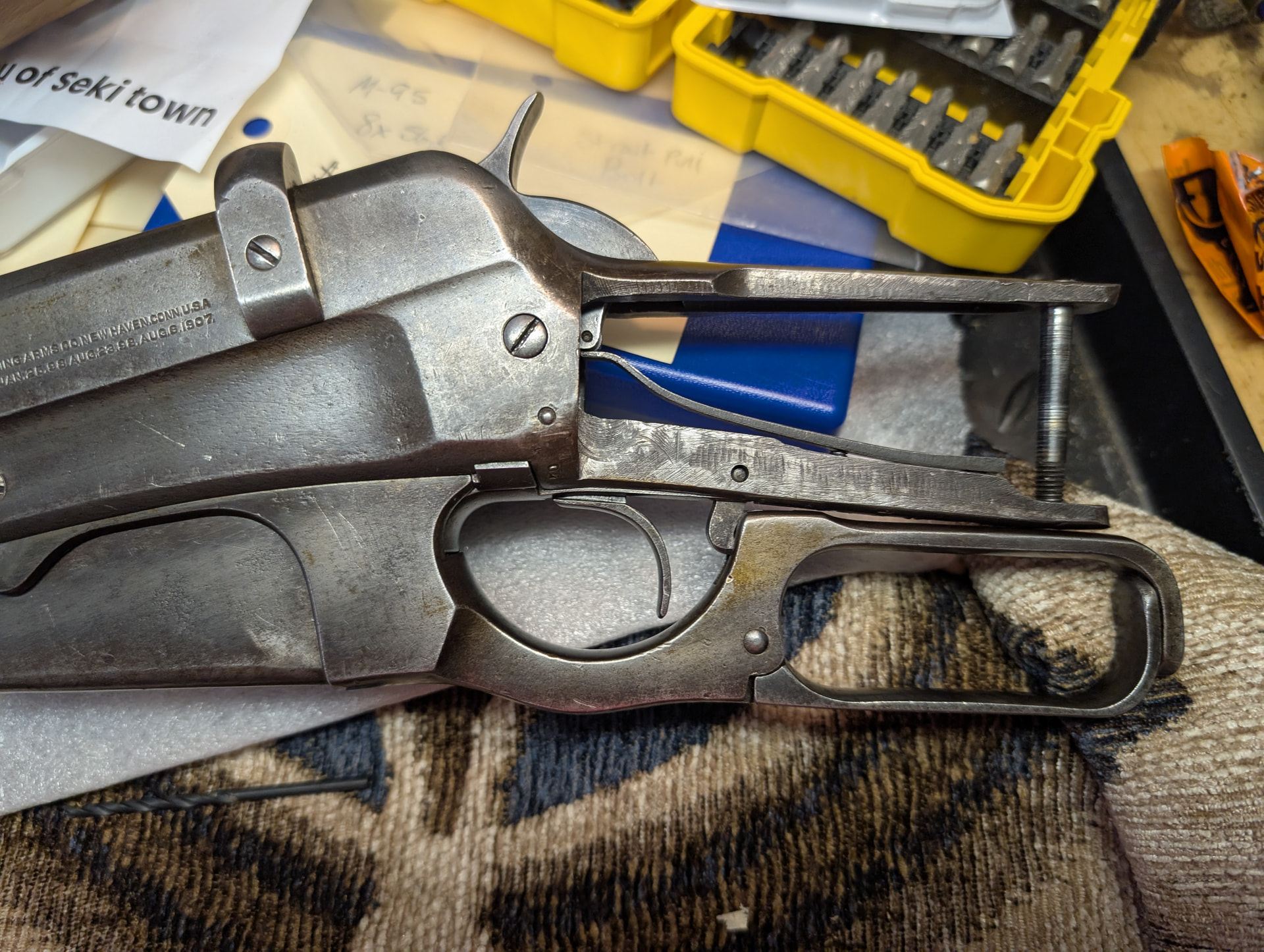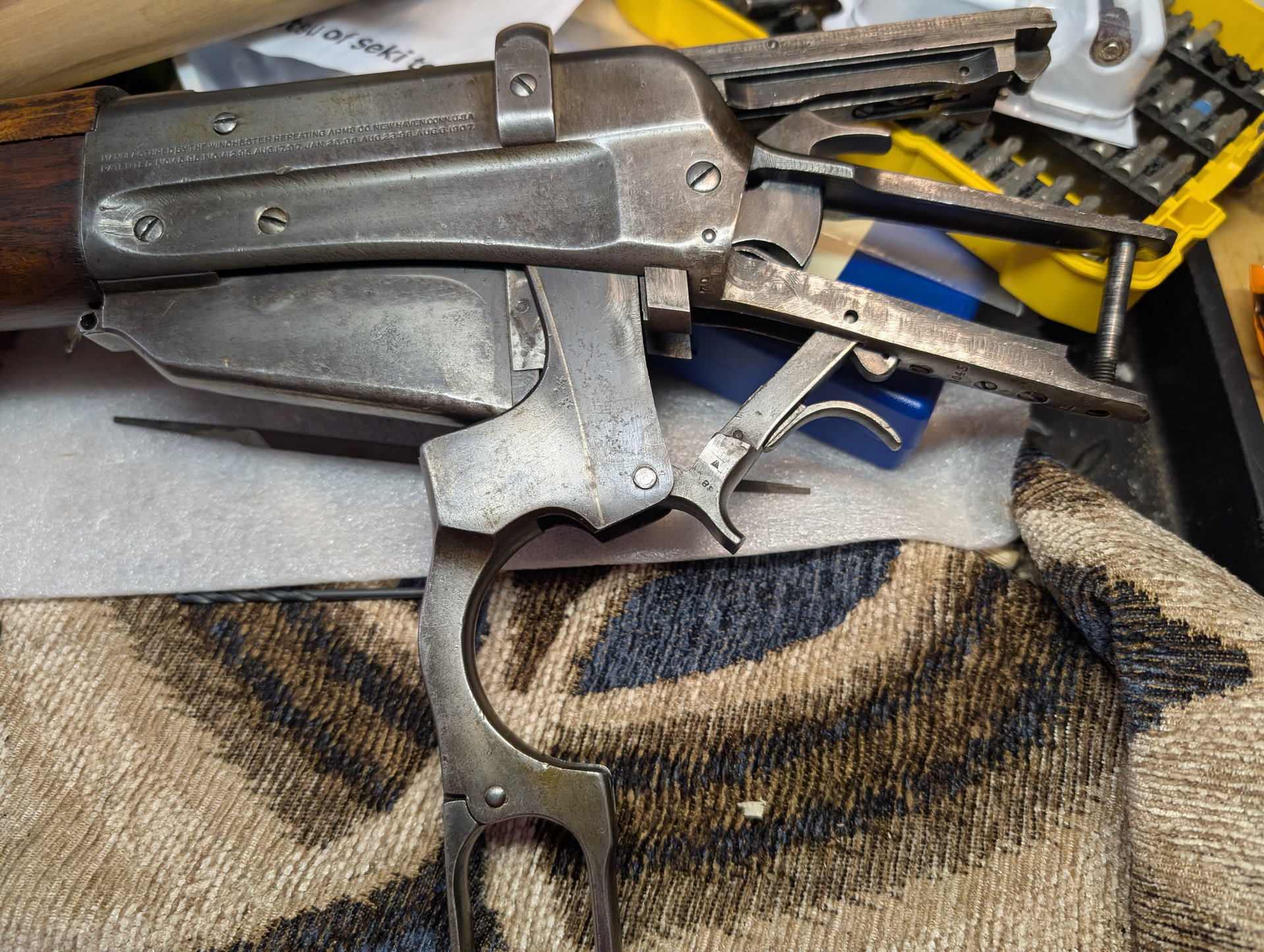 It’s a distinct variant of the Model 1895, produced specifically for the Russian Empire. From what I can gather, Alg is having trouble reassembling the rifle, particularly with the spring and hammer connection.