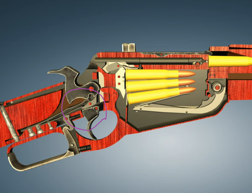 This image shows the hammer release right on top of the trigger when the hammer is cocked. On my gun the trigger is loose and there appears to be distance on the inside of the action between the trigger and the hammer release lever.
