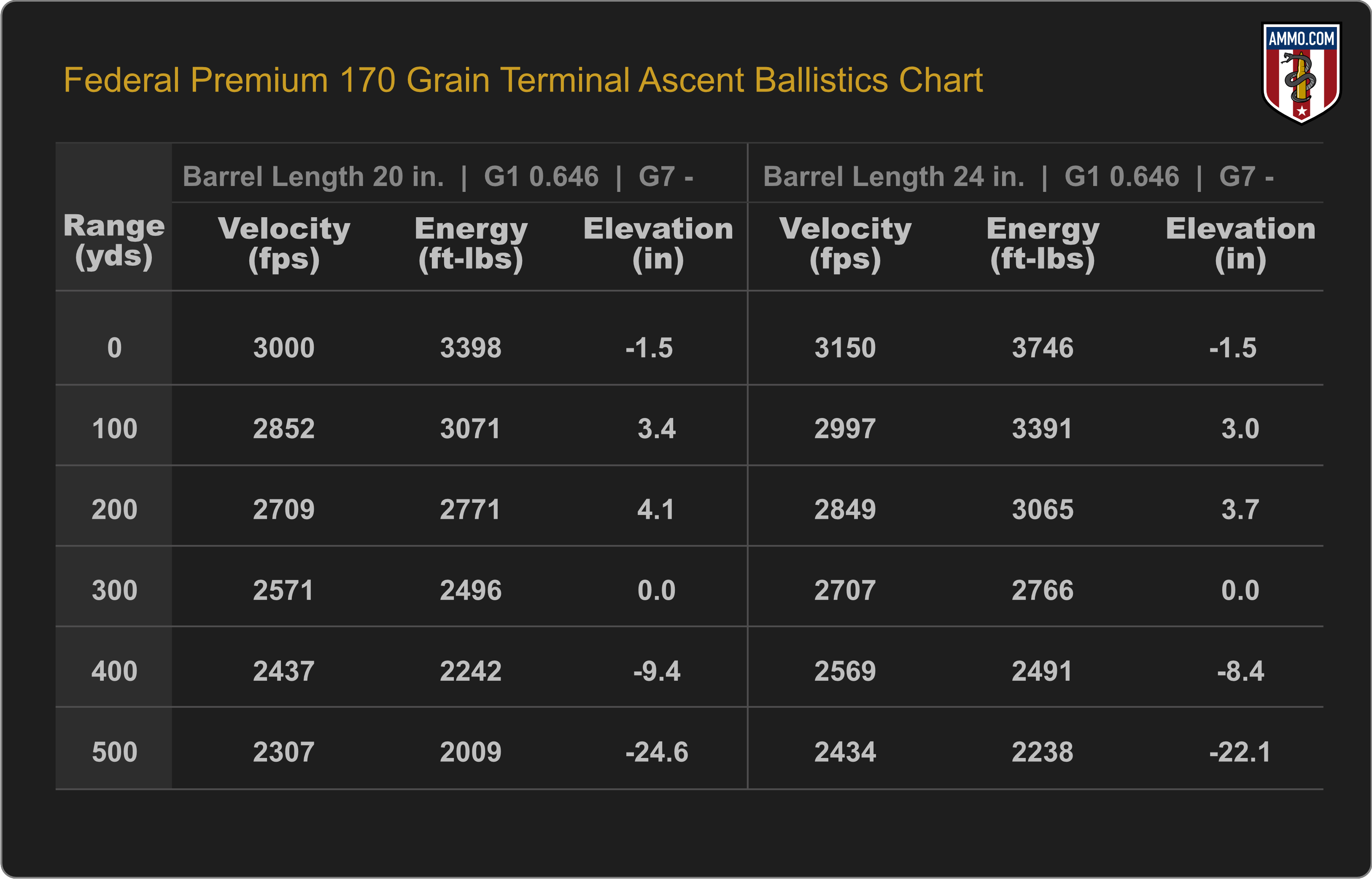 Federal Terminal Ascent 170 Grain Ballistics Chart