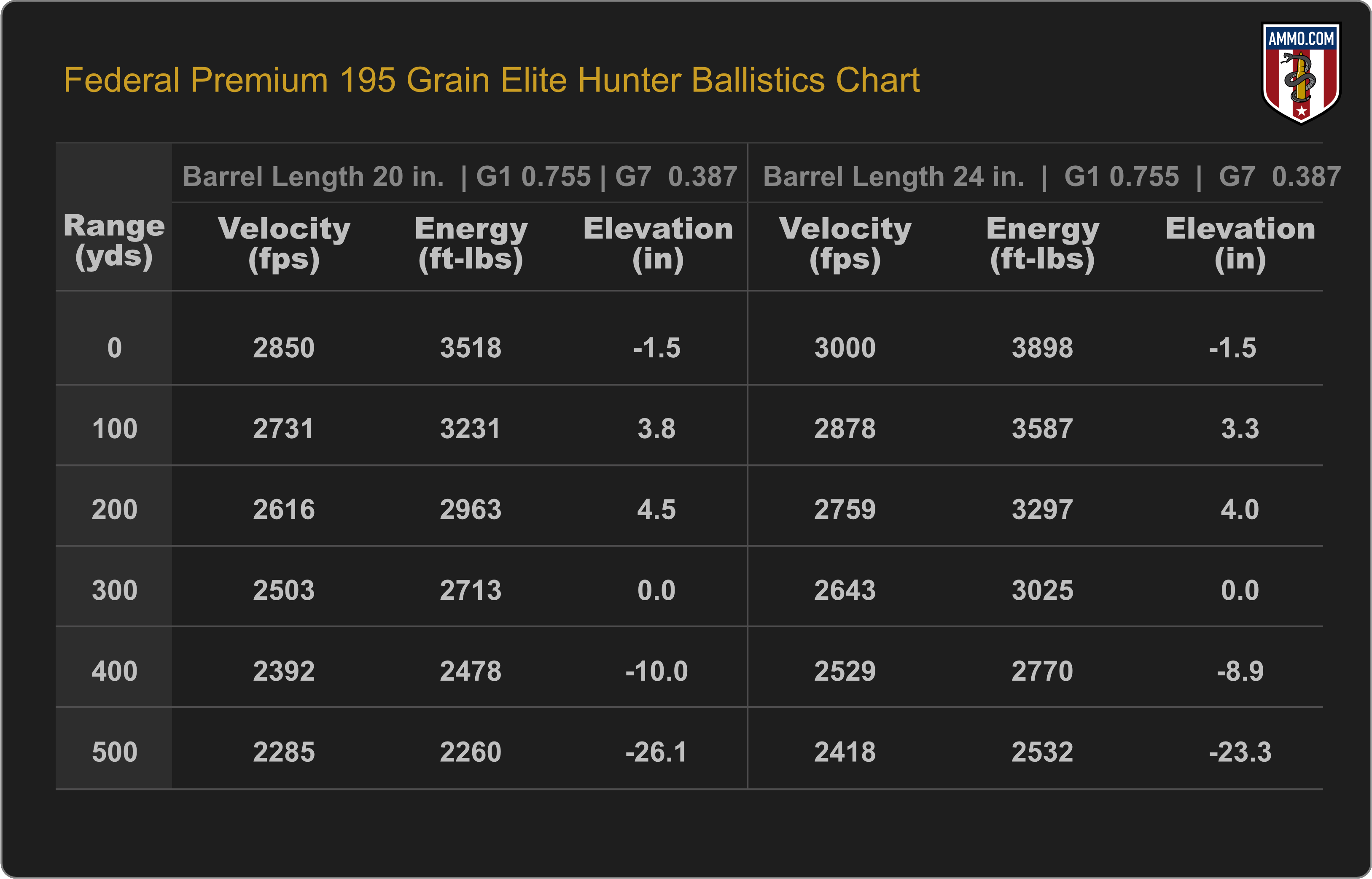 Federal Berger Elite Hunter 195 Grain Ballistics Chart