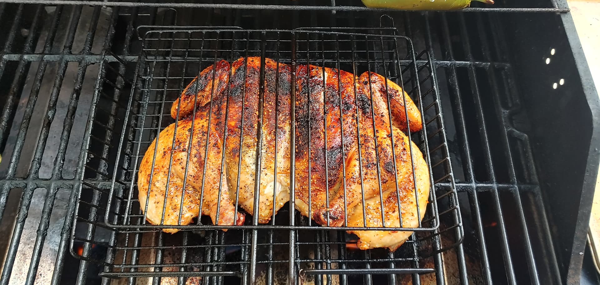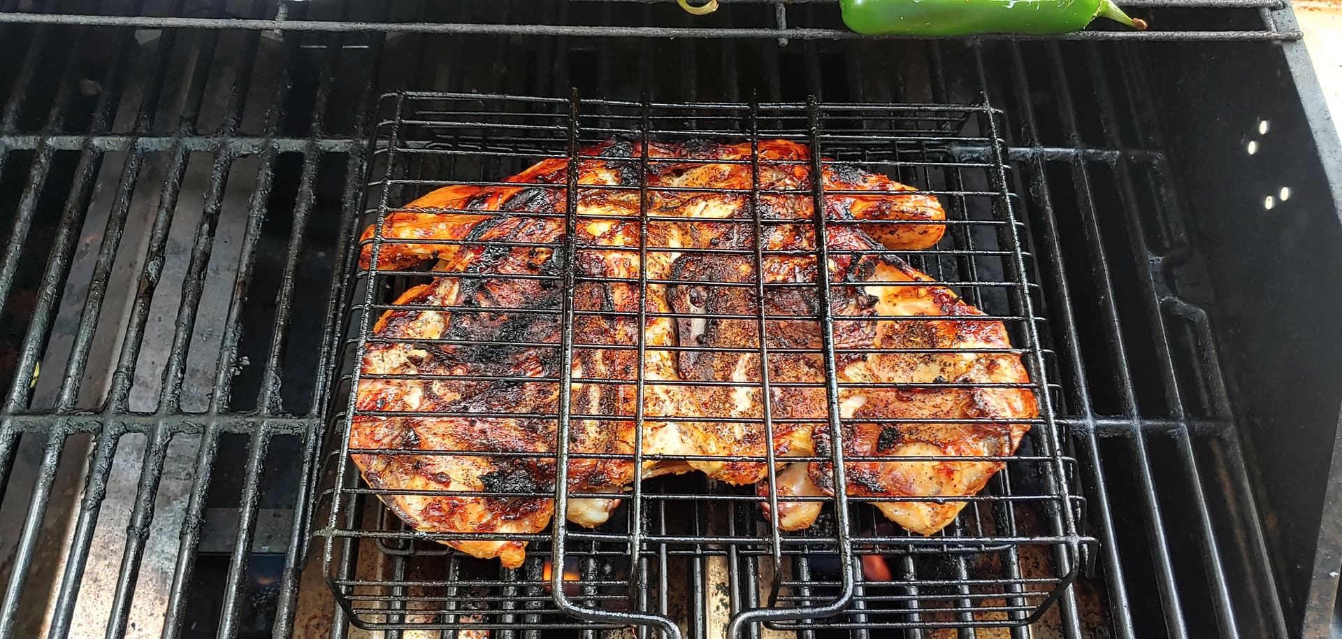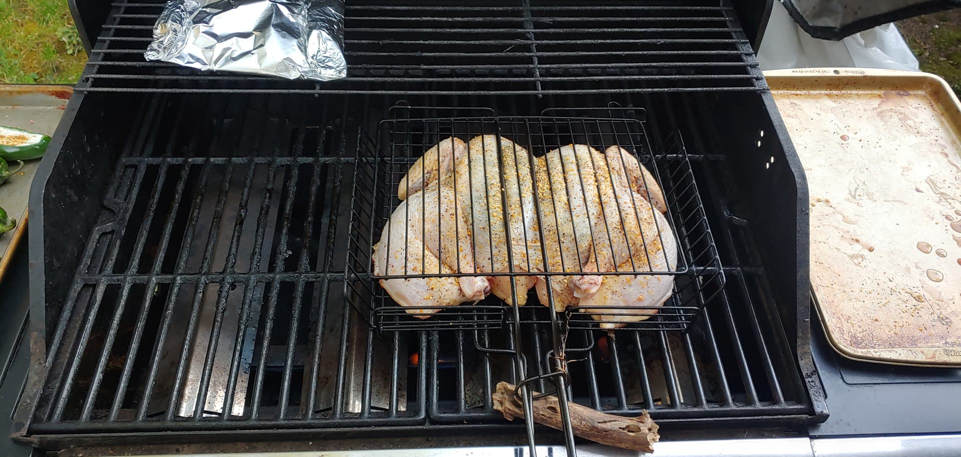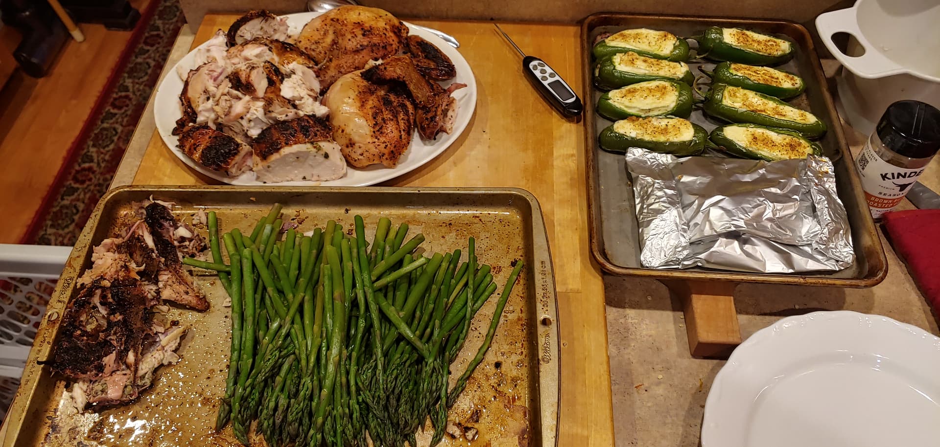 On the menu ; Spatchcock or Butterflied Chicken, Jalapeno Poppers, steamed asparagus, breezy evening, assistant chef Mando.