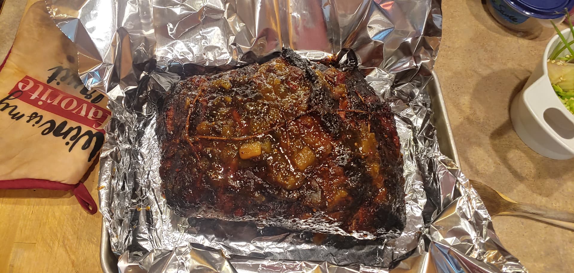It’s the three T’s. Time, temperature and treatment. I like a lot of flavor so a number of spice mixes are used. Franklins barbecue in texas goes by just salt and pepper with texas white oak as the fuel for their brisket and stuff. Gotta wrap in saran wrap for at least a day to let flavor penetrate. Then in the smoker at least 4 to six hours, lets say 200 to 225 at most, light to medium smoke, to heavy can kill. The foil wrap is a must, lets all the connective tissue melt and blend. The mango chutney is like a spiced semi sweet jelly that moistens and adds to the juice.