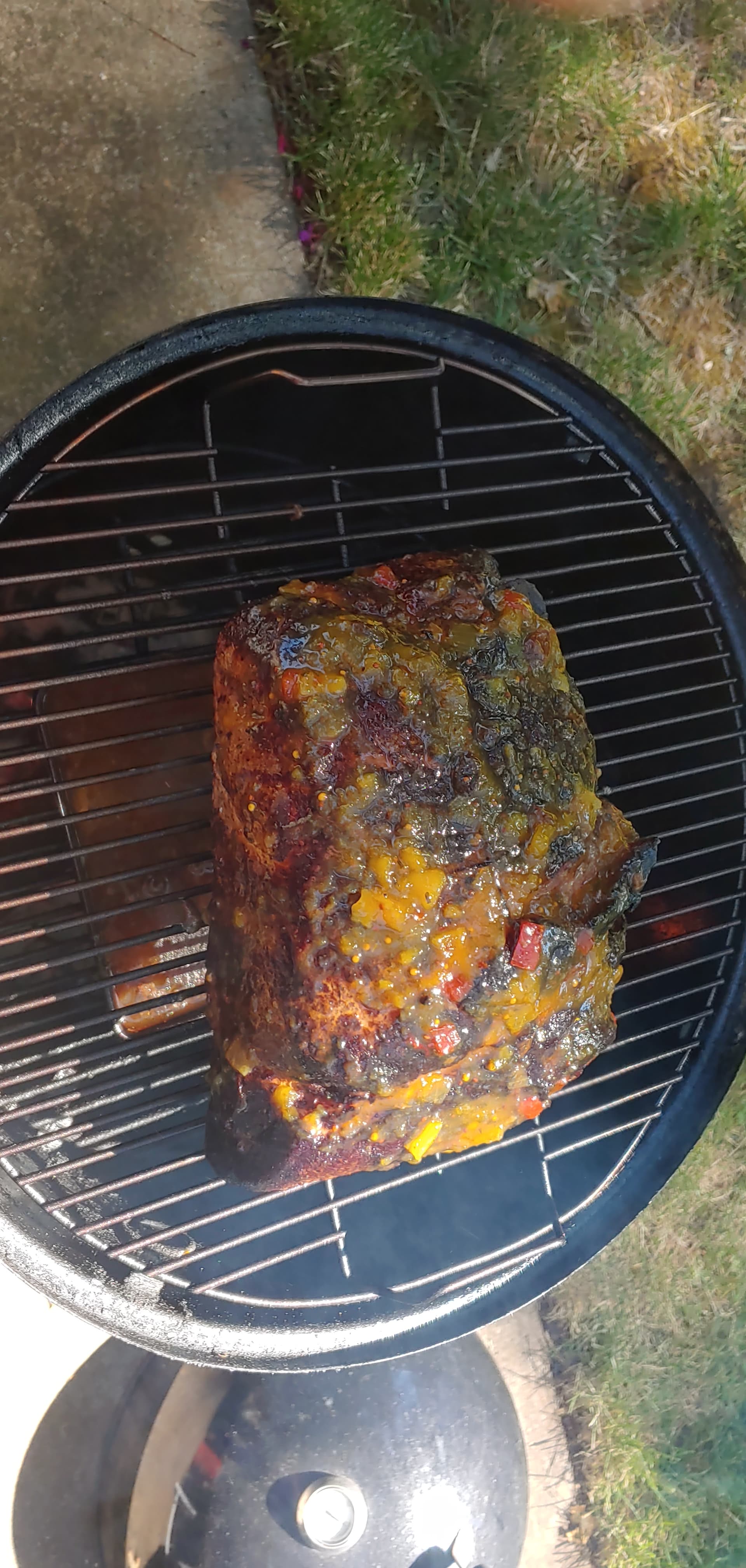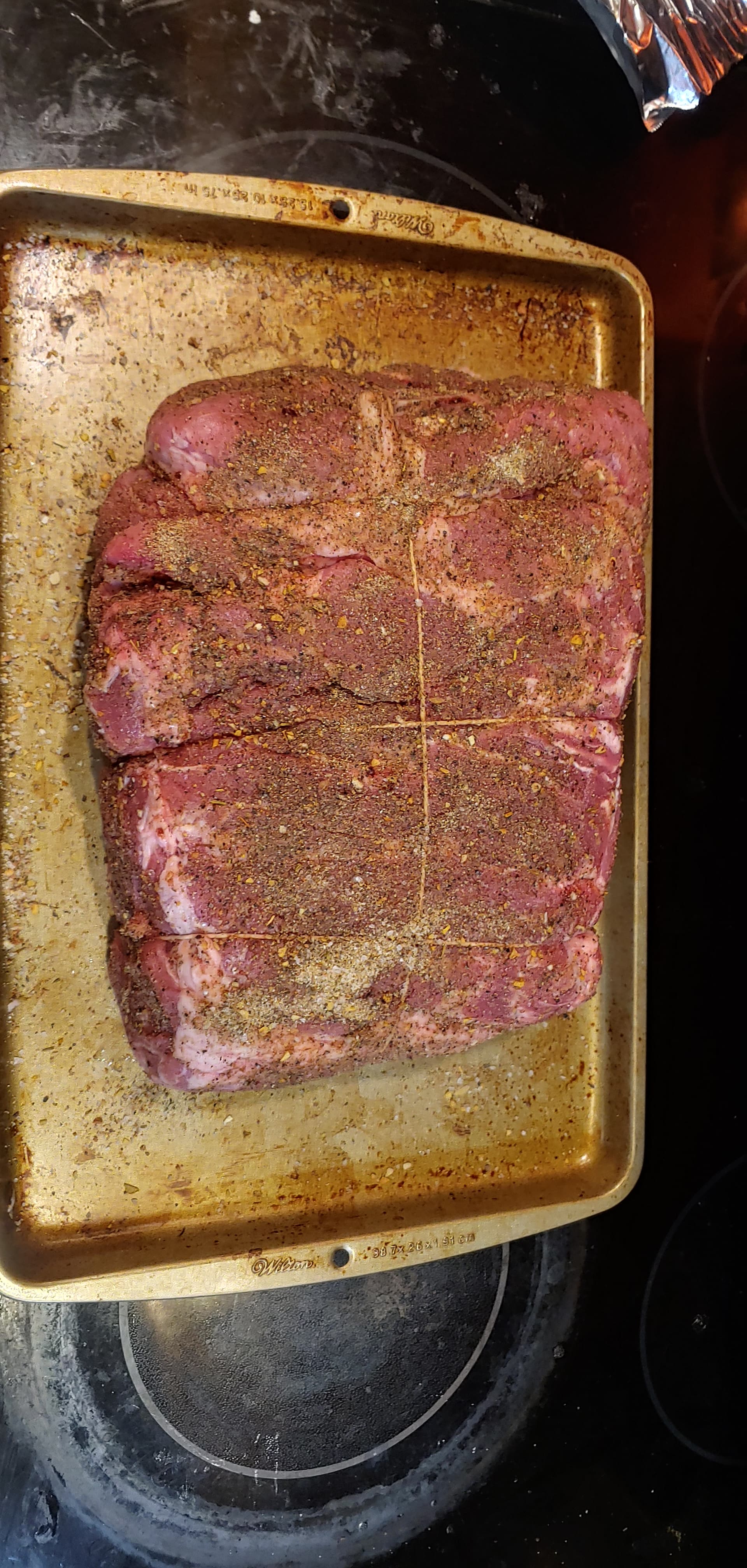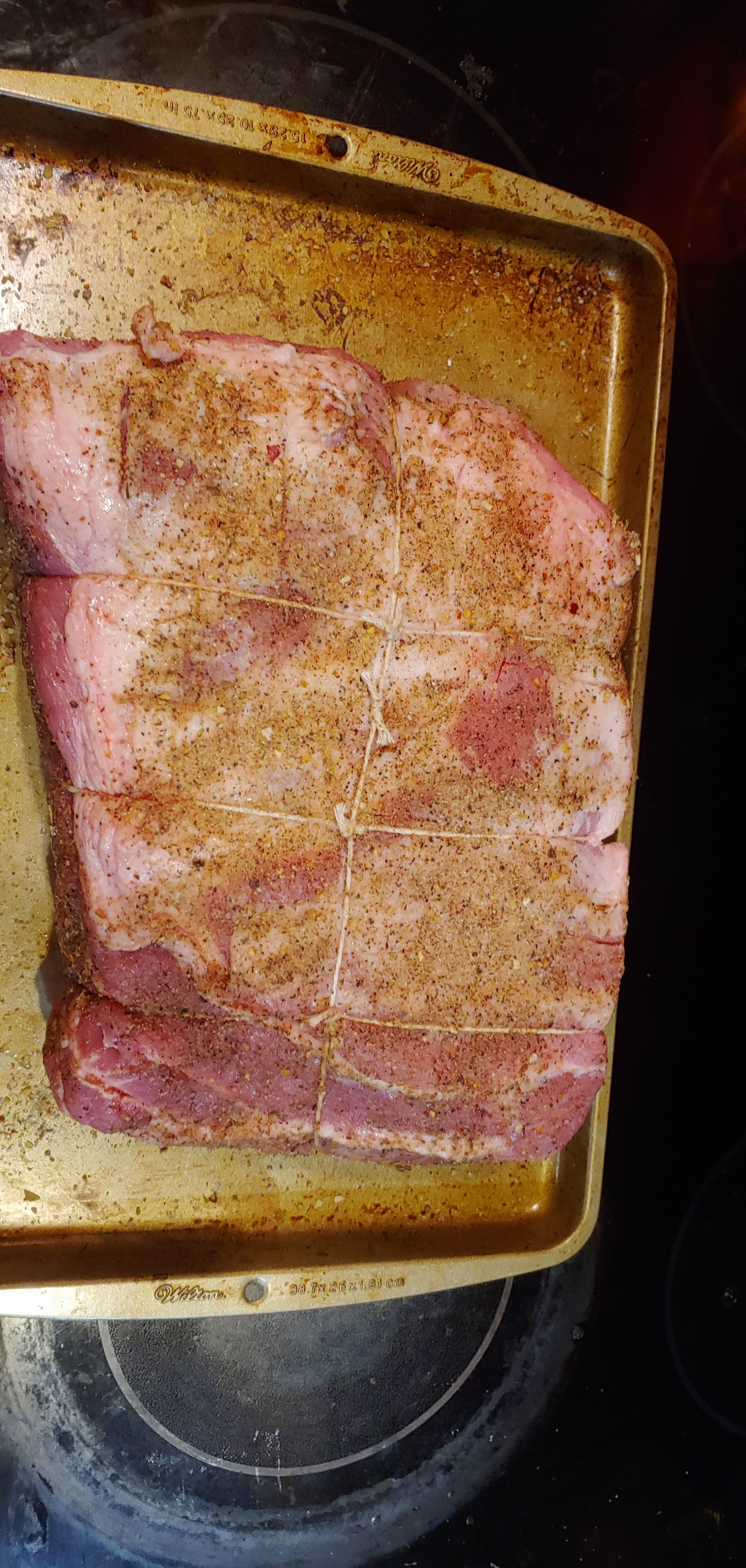 This was 1.99 a pound, perfect size. Used a dry rub, just a mix I threw together. Gonna smoke for 6 hours, then 4 hours in foil at 200 with a mango chutney coating.