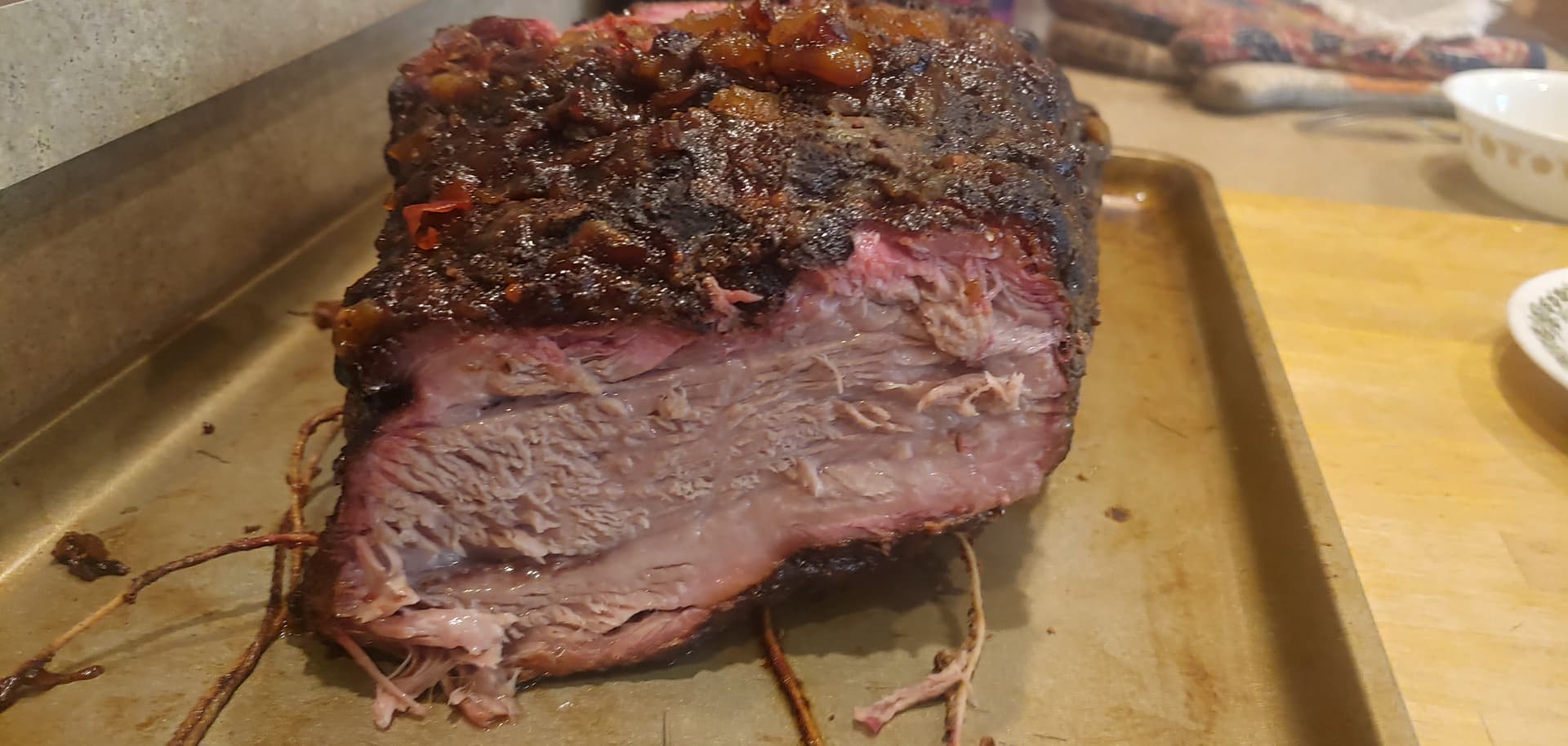 Like any good carnivore you look right back. Gonna smoke a bone in pork butt this weekend, trimmed off some of the fat back, score slightly, tie it up, season and wrap in plastic a couple days.