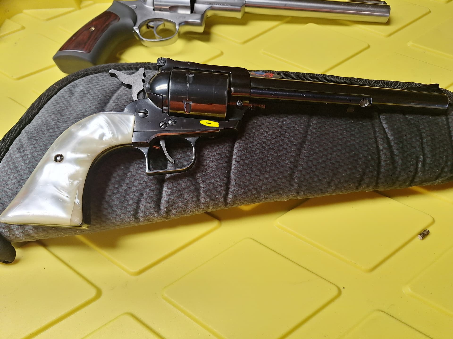 45 colt magnum I call them. Same recipe, H110 right to the base of the bullet. From memory around 24-25gr, but have to go look. Shoot them out of my 4-5/8 Blackhawk also. That’s a ball of flame. YeeHaw.