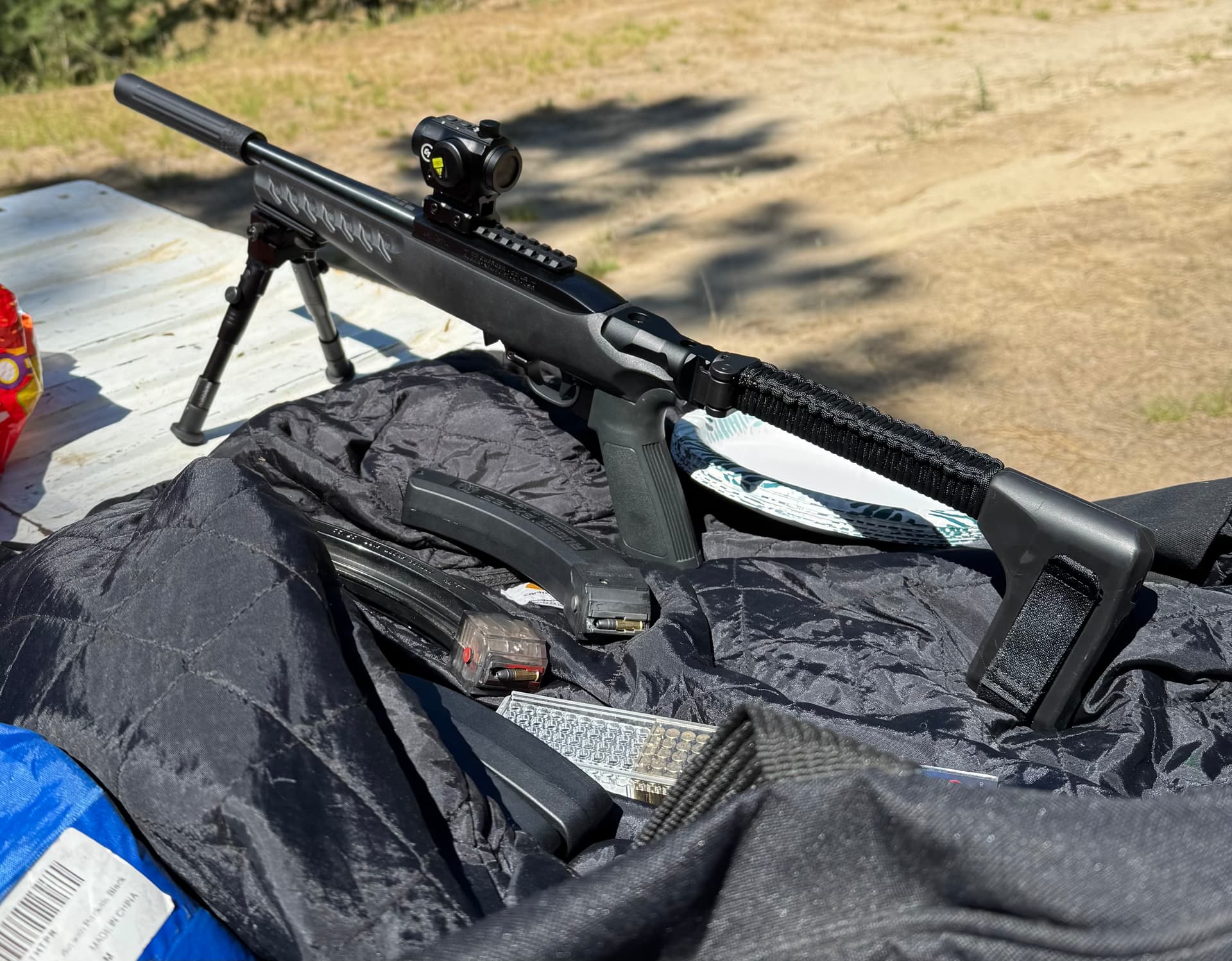 This thing is a ton of fun, ruger 22 charger shooting standard velocity through a spikes tactical suppressor. Oh and it has a binary trigger.