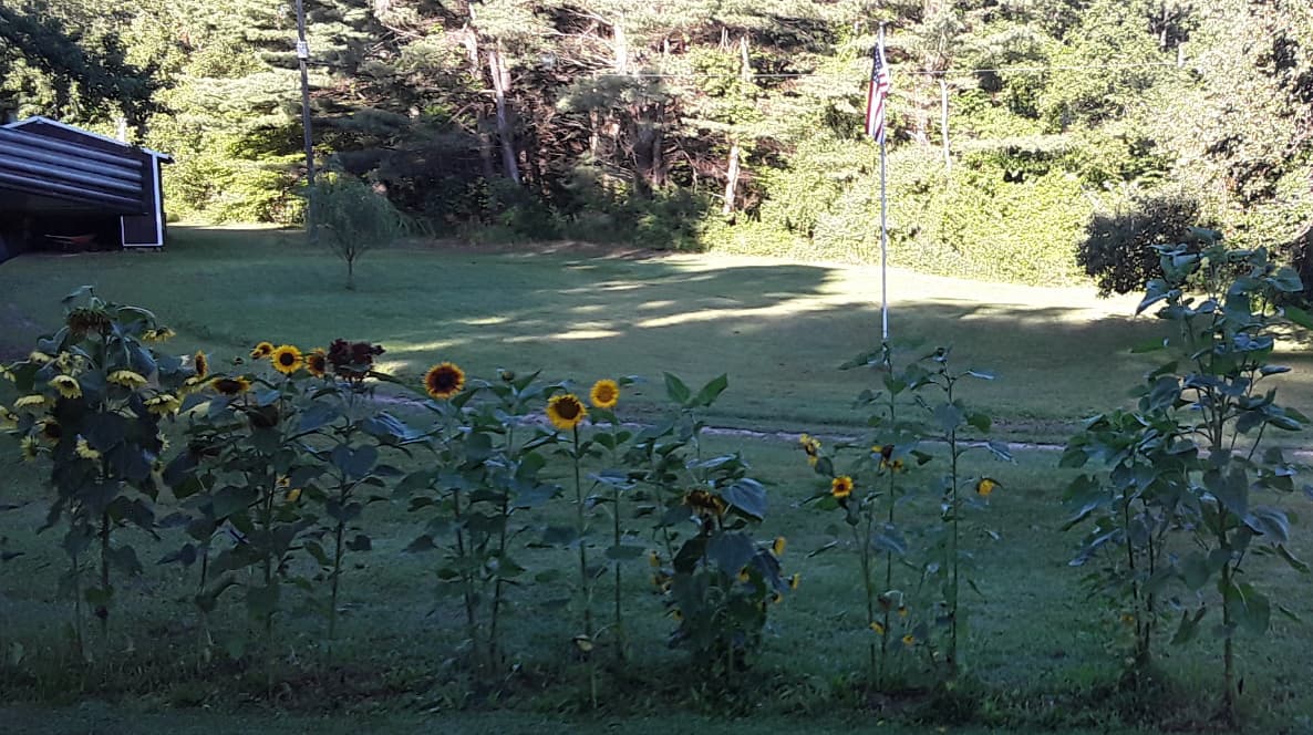 I have some tall sunflowers this year, the one to right of the flag pole is just now opening and I bet 8’+ tall, I’ll try to measure later