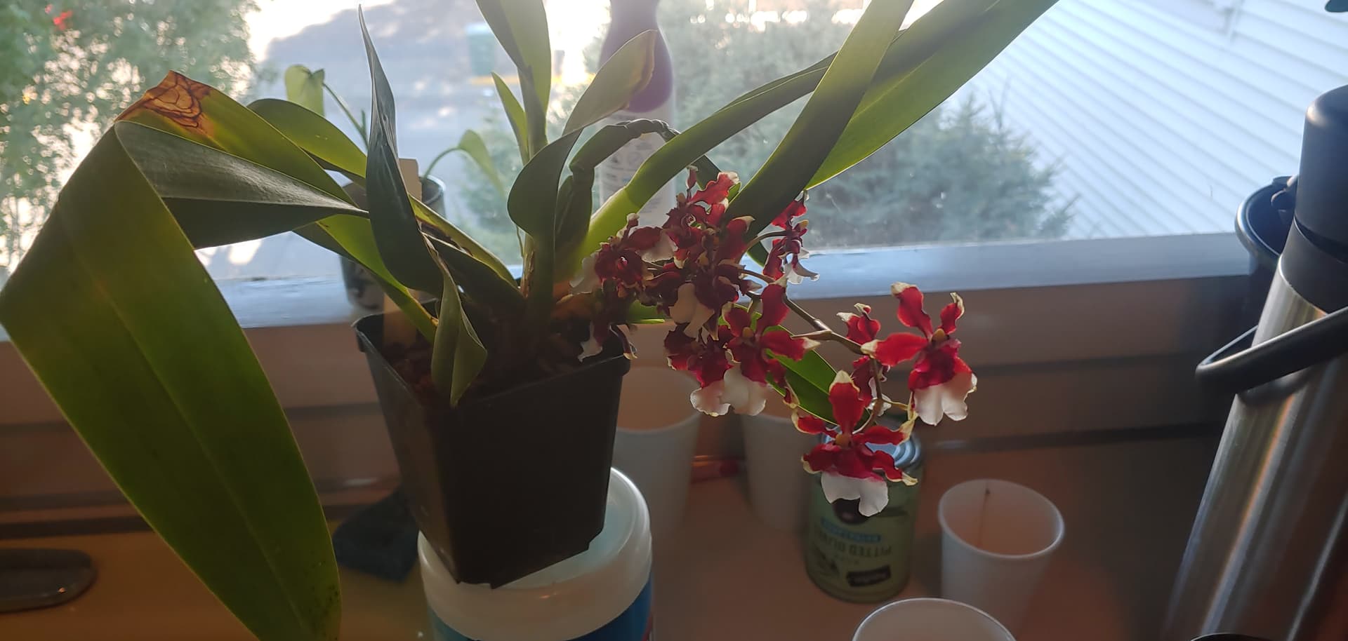 nice to have one of the orchids bloom, this one smells like chocolate