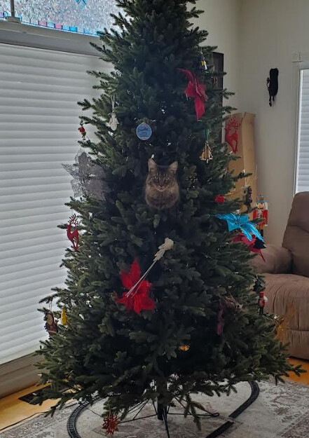 Elf on a shelf has been replaced by cat on a branch ![]()